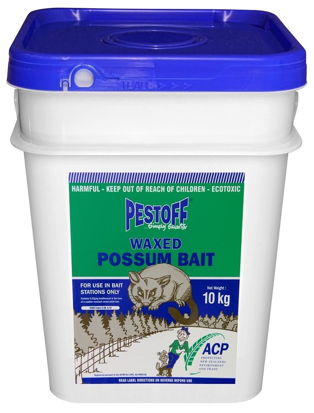 Anticoagulant poison cereal based pellets for the control of Possums and rats. No licence is required to use this bait when used in bait stations. A CSL licence is required for aerial or broadcasting.