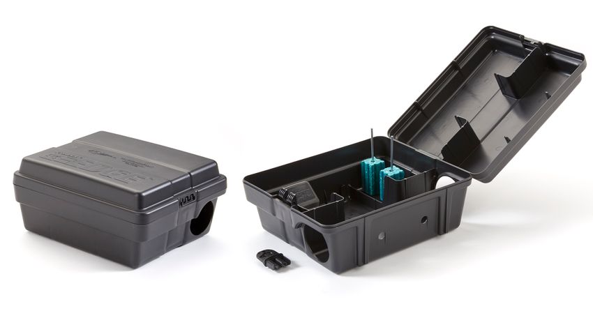 PROTECTA EVO Edge is a versatile rodent bait station that is easy to use and service. The station opens and locks quickly with Bell’s EVO key. The built-in service record card holder, side-opening design and rounded interior walls make servicing fast, maximizing technician productivity. The station has a large bait capacity holding up to eight 28 g or four 225 g Blox securely inside the station and comes with vertical securing rods. Protect EVO Edge uses the same replacement bait rods as Protecta Sidekick (SR0667)