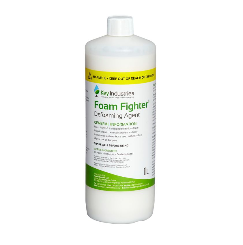 Foam Fighter is designed to reduce foam in agricultural chemical sprayers and also in dip tanks such as those used in the grading of peaches and apples. Foam Fighter antifoam emulsion is an easy-to use, water-dilutable, silicone defoamer for aqueous systems. Easy to dilute and disperse, it is effective in hot processes, high-sugar solutions, and salt brines, and maintains its effectiveness at temperatures to boiling. It qualifies under FDA/ANZFA regulations for use in foods and also has gained acceptance for use in Kosher foods. Can be used in spray tanks and food processing. Foam Fighter is permitted for direct addition to food by the Federal food and Drug Administration and Australian and New Zealand Food Authority. Any limitations on use in standardized foods should be observed.