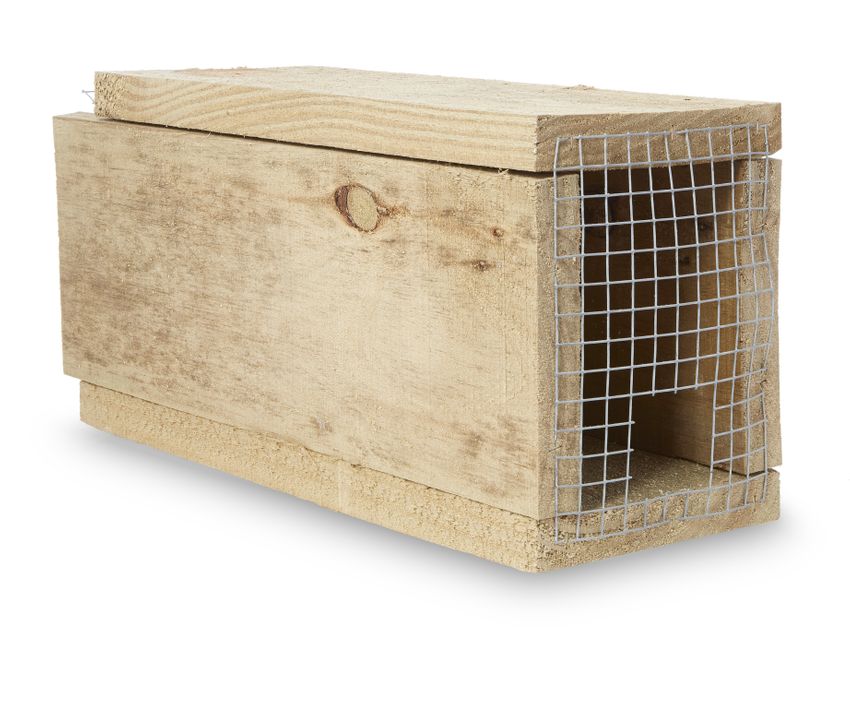 box housing developed to hold rat snap traps. Designed to exclude non-target